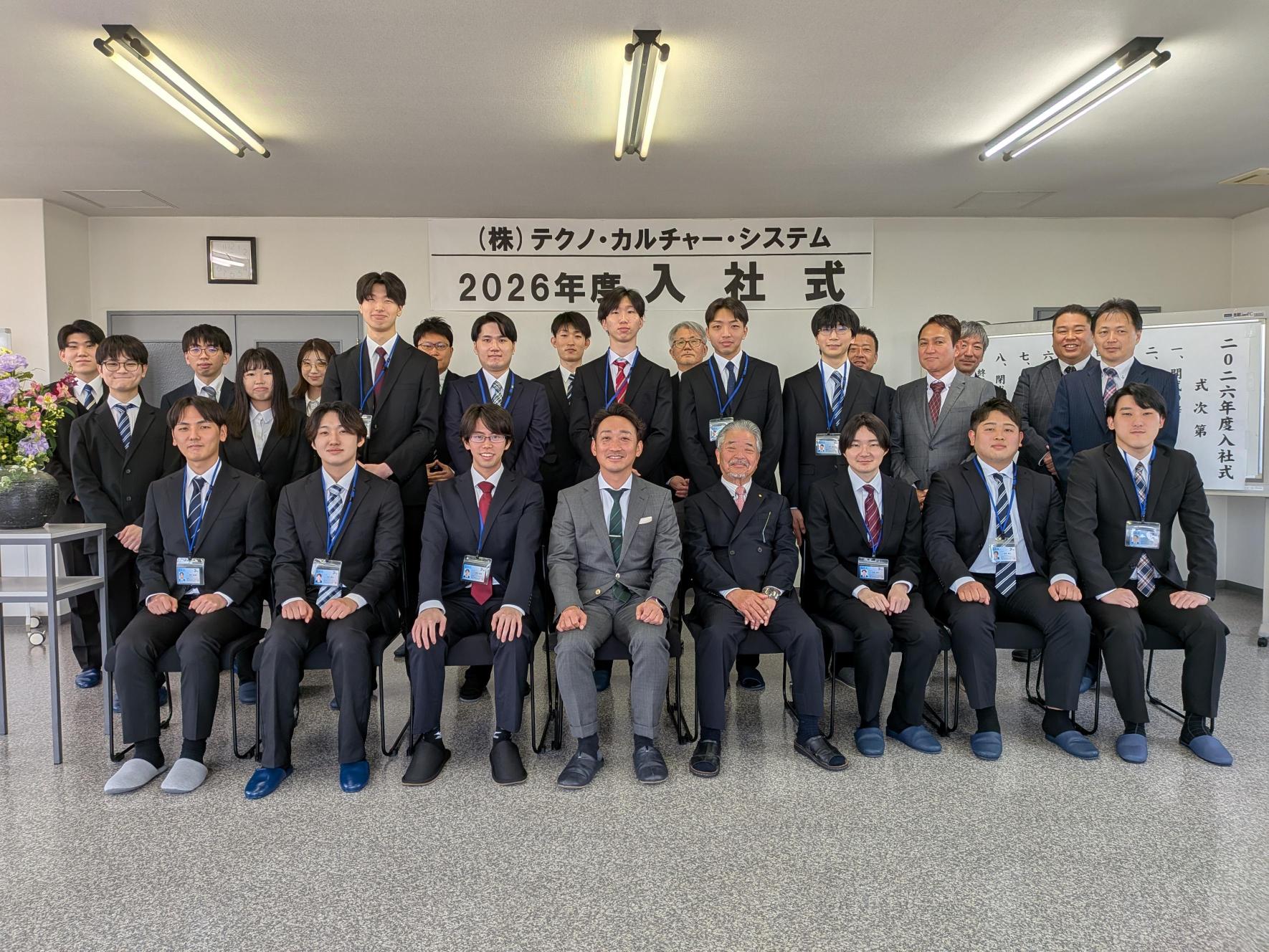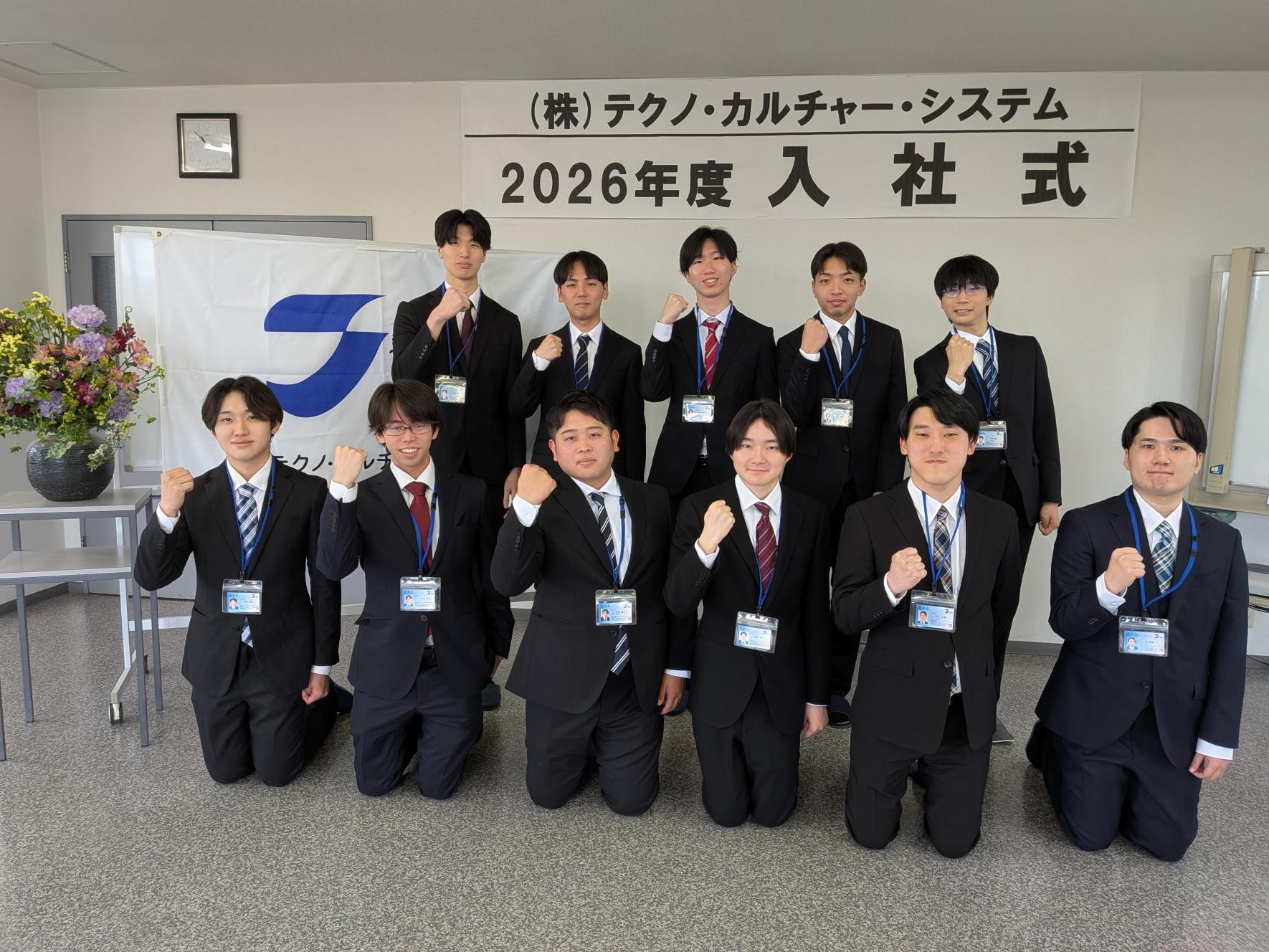 ニュース TOP>ニュース>お知らせ>2026年度入社式を実施し、新卒11名が入社しました。 2026年度入社式を実施し、新卒11名が入社しました。 2026年04月 4月1日に入社式を執り行い、新たに11名の新入社員を迎えました。今年もフレッシュなメンバーが揃い、それぞれが新たなスタートへの期待と緊張を胸に式に臨んでいます。 決意表明では、自身の目標やこれからの意気込みについて堂々と発表しており、今後の成長が楽しみになる内容でした。式を終えた後には、社会人としての一歩を踏み出した自覚が感じられ、頼もしさの伝わる姿が印象に残りました。 これから始まる研修や業務を通じて、仲間と切磋琢磨しながら成長し、当社を支える存在として活躍していくことを期待しています。 カテゴリー一覧 お知らせ